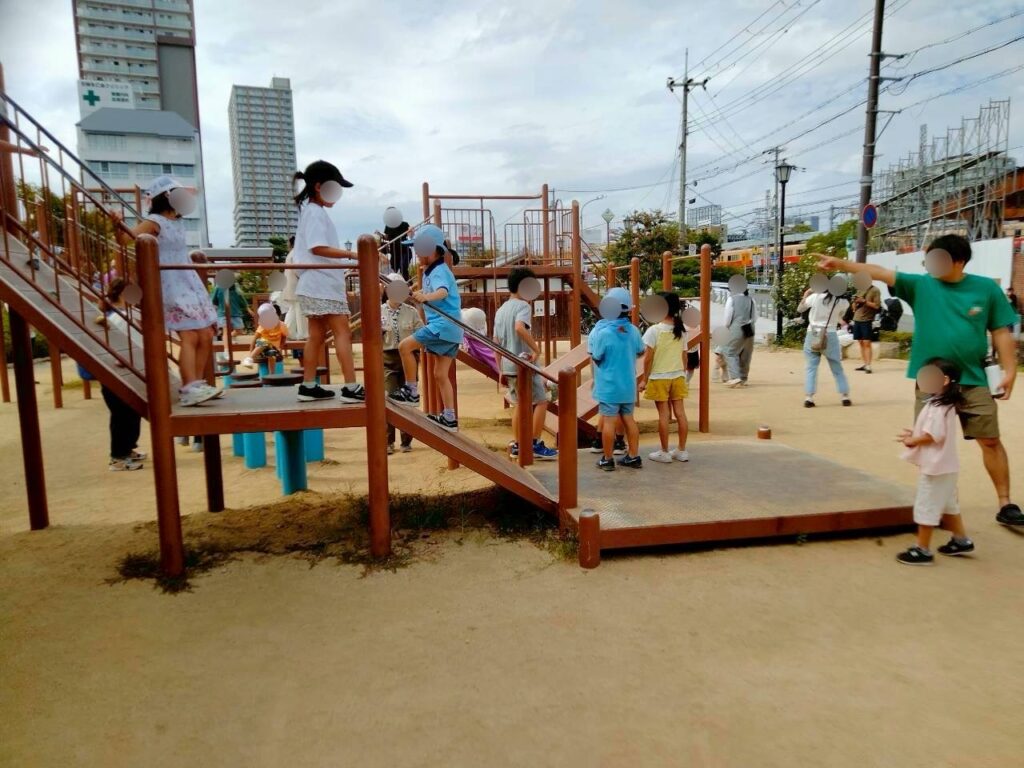 いっぱい身体を動かして遊んだみんなは、ペロっとお弁当を食べ、食べ終わったらすぐにまた広場前の公園の遊具で、大学生の副長補&補助者のお姉さんたちと一緒に遊びます🎵