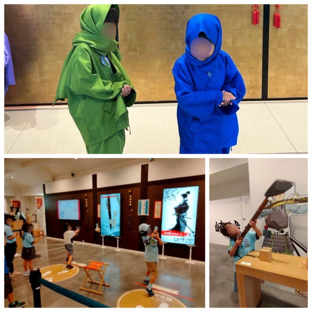 尼崎城では『なりきり体験ゾーン』で忍者や武士、お姫さまなどの衣装を身に着け記念写真を撮ったり、『尼崎城ゾーン』では、映像で剣術&鉄砲の体験をしたり、槍や鉄砲などを持ち上げて実際の重さを体感したり…と遊びながら歴史のお勉強をしました😉