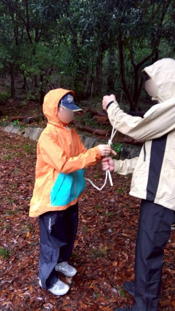 りすスカウトは初めてのロープ結びでしたが、どちらの組もくま・しかスカウトが丁寧に教えてあげる姿を見ることができました。