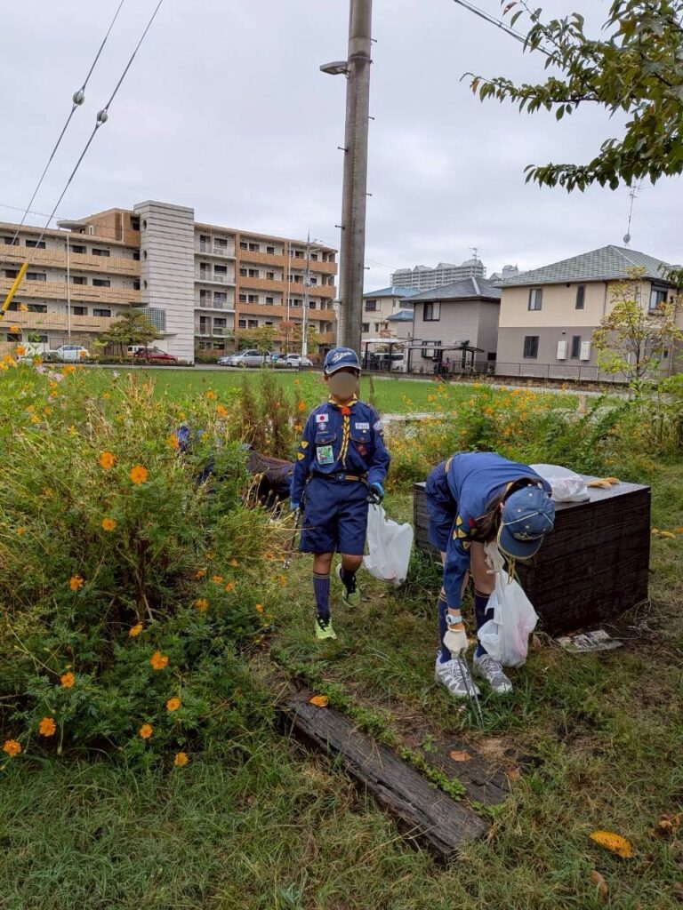 甲山に到着するとまずは、前日から秋野営をしているボーイ隊に会いにキャンプサイトへ行きました。