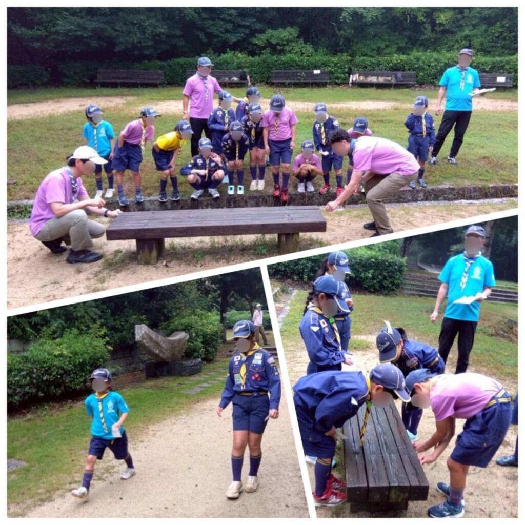 ベンチの長さをピタリ当てたスカウトや、50メートルを約5cm差で計測できたスカウトもいました。