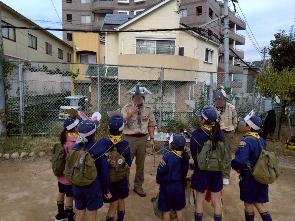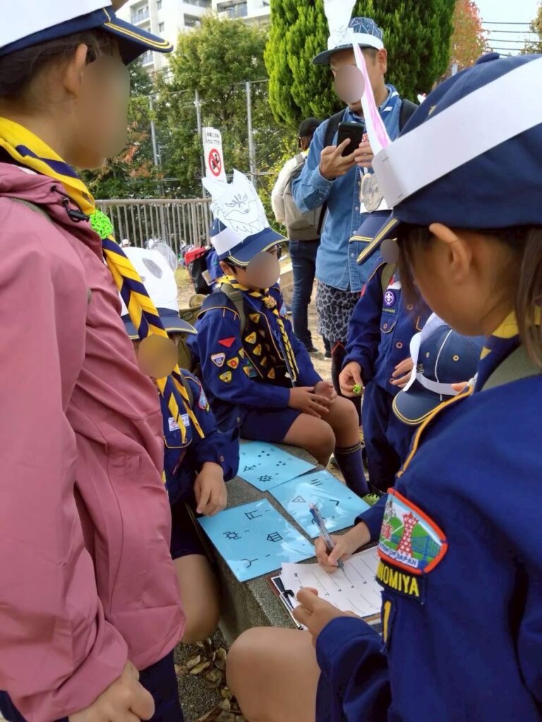 1団は今回2つの組がカブラリーに参加しました。当日は少し雲もありましたが、さほど寒くも暑くもなくハイクには快適な天気でした。各ポイントでは、ものの長さを当てる「計測」、聴覚や嗅覚などを活かした「五感ゲーム」、ロープとペットボトルを使った「爆弾処理」などスカウト技能を競うものばかりでした。