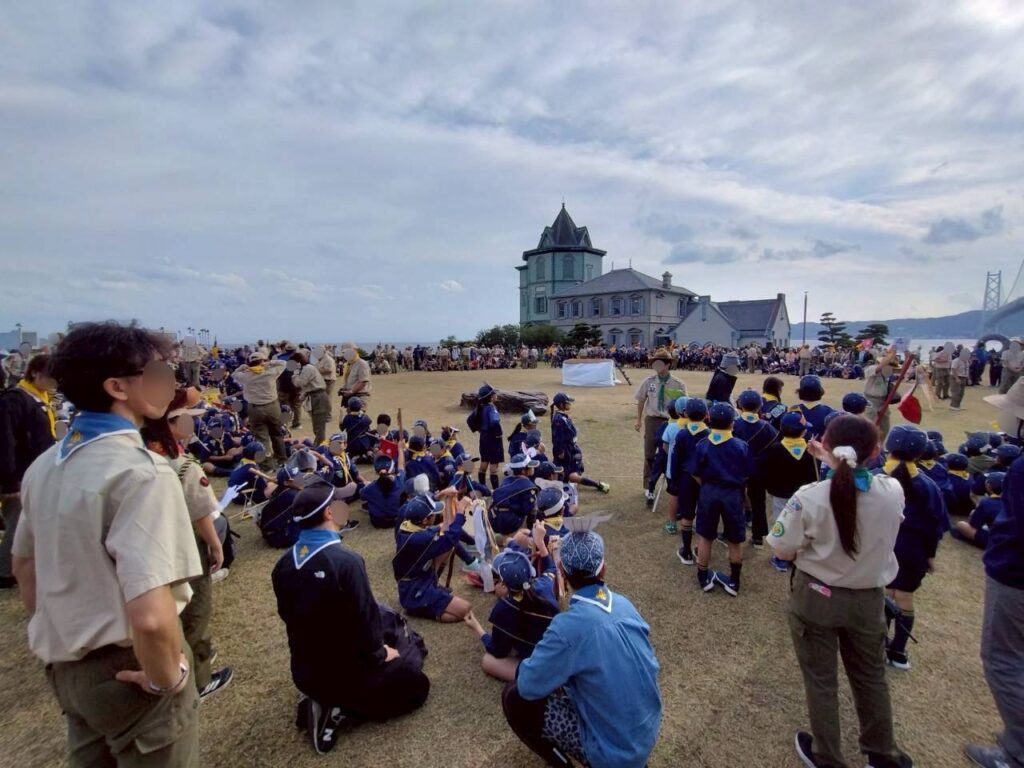 14時過ぎには、全スカウトが舞子公園の芝生広場に集まり、セレモニーをして解散しました。