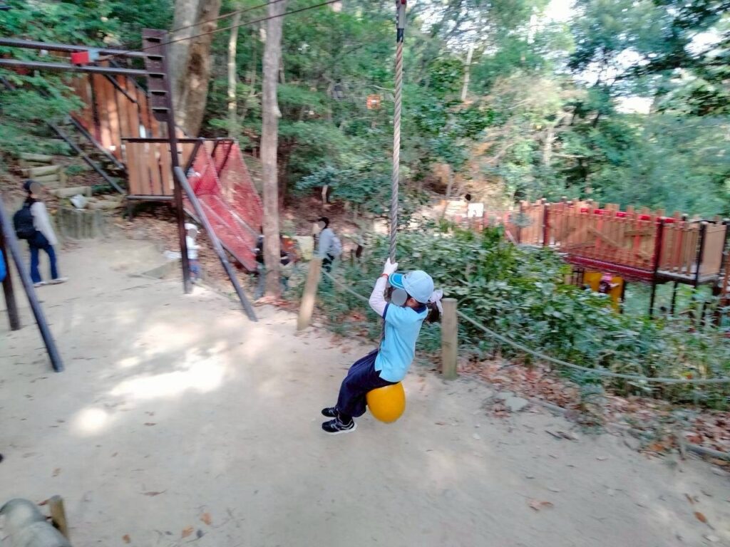 縄のハシゴを登ったり、トンネルをくぐったり、ターザンロープや長〜い滑り台を滑ったり…🎵