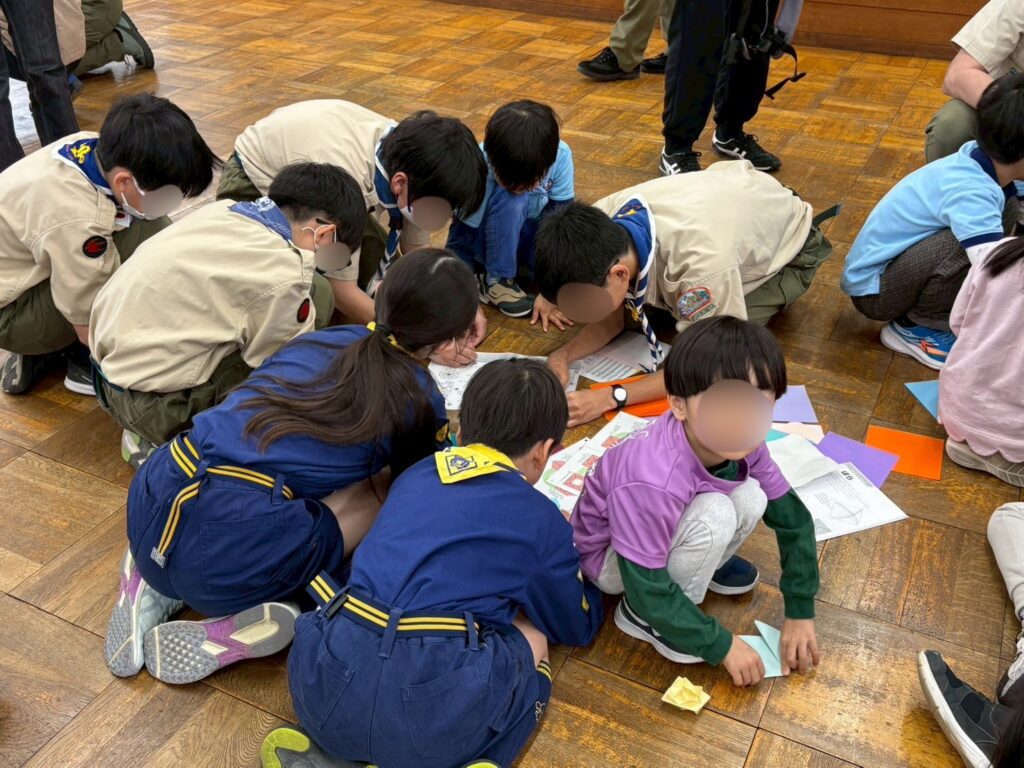 西宮第1団の全ての隊(ビーバー隊・カブ隊・ボーイ隊・ベンチャー隊・ローバー隊)が集まりました。ベンチャー隊・ローバー隊のお兄さん、お姉さんたちとクイズやゲームを愉しみました。