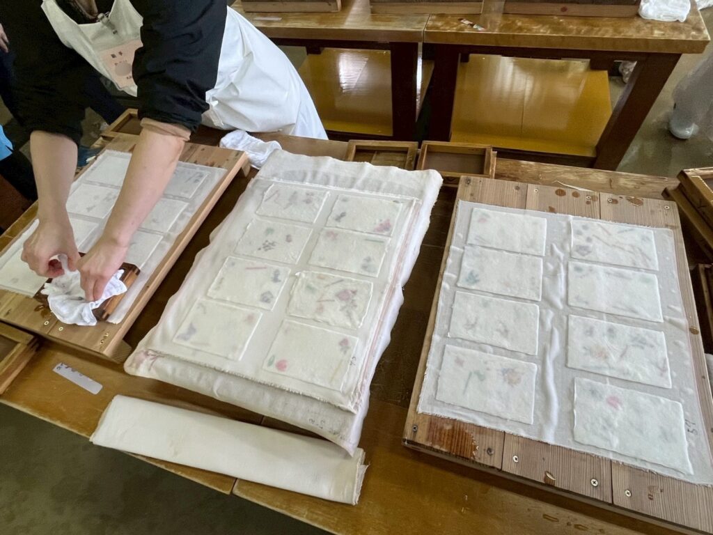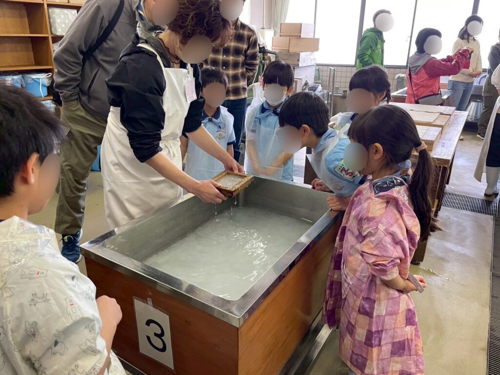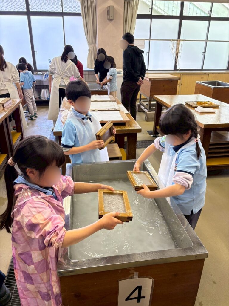 ビデオでお勉強をした後は、実際に和紙作りの工程の一つである『紙すき』体験をさせてもらいました🎵