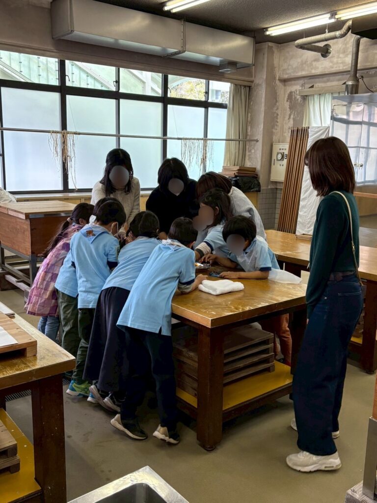 指導員の方からすきげたの持ち方や使い方を教わり、和紙のハガキを作ります🎵