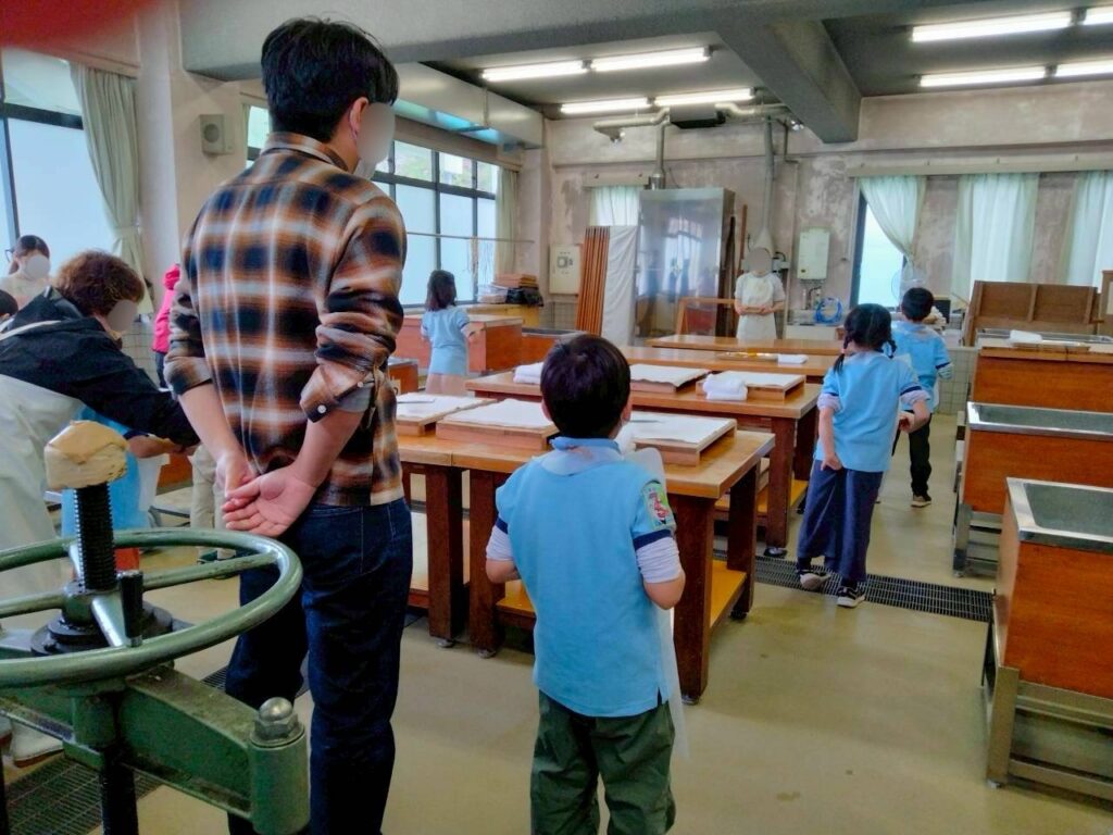 いつもにぎやかなスカウトたちも、紙すき体験が始まるとすごい集中力で紙すき作業に夢中になっていました😆