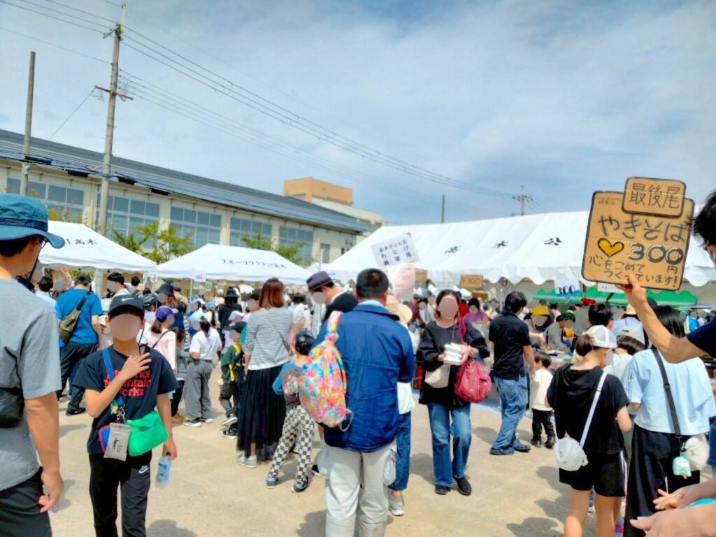 お祭り開始前の9時半頃から行列が出来たので、ひたすら焼きそばを